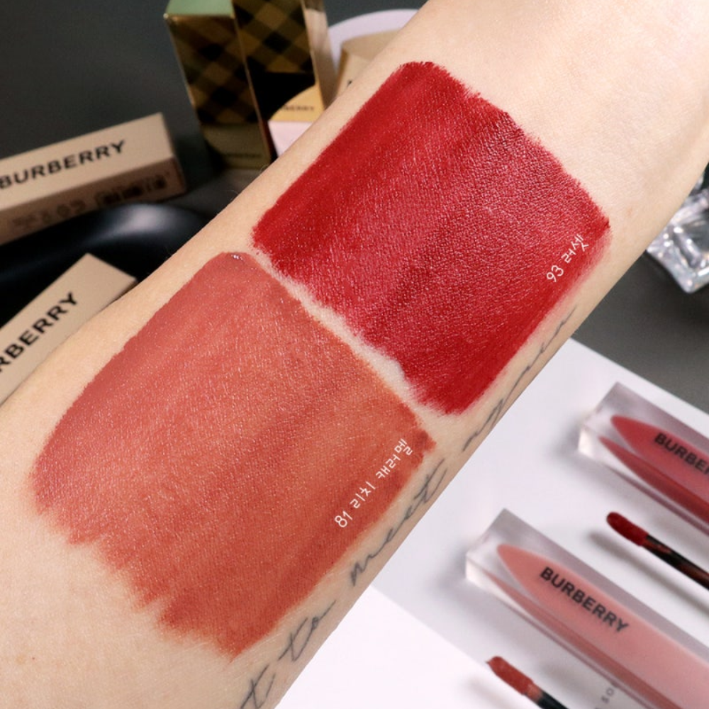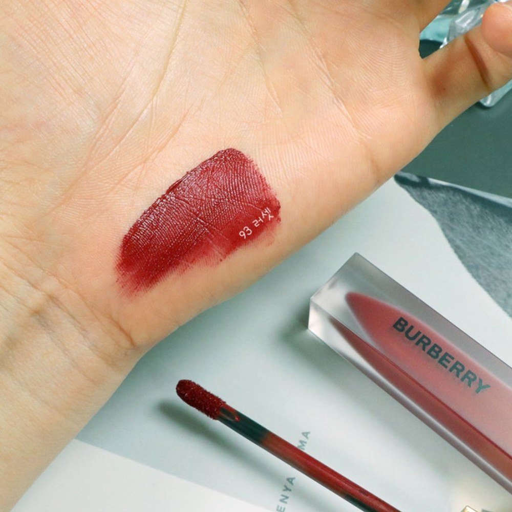 ลิปสติกเนื้อแมตต์แบบลิควิด (liquid lipstick) สีแดงเฉดนัวๆ ที่ทาแล้วดูคลาสสิคเหมาะกับทุกสีผิวจากแบรนด์แฟชั่นหรู Burberry ที่เน้นทั้งความติดทนและความสบายริมฝีปาก ลิปตัวนี้เป็นลิปเนื้อเหลว (จิ้มจุ่ม)