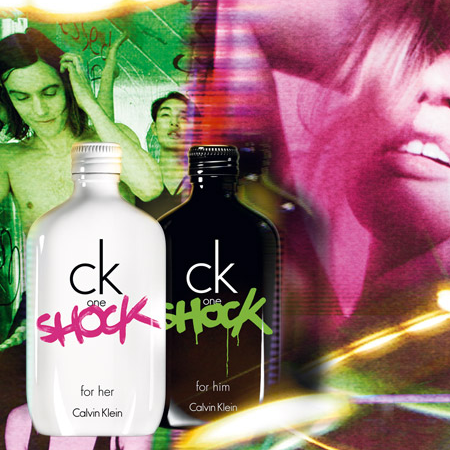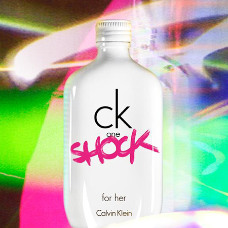 Calvin Klein One Shock for Her ให้กลิ่นหอมแนว Oriental-Floral ได้รับคำจำกัดความว่า "A message of rebellion carried on waves of floral-gourmand scents" (ข้อความจากการก่อการร้ายโดยใช้คลื่นแห่งกลิ่นดอกไม้) เอกลักษณ์ที่โดดเด่นขนขวดสีขาวคือ รอยลิปสติกสีชมพูที่เขียนว่า "Shock" นำเสนอความอินเทรนด์และเซ็กซี่ สัมผัสแห่งสิ่งเร้าที่ได้จากธรรมชาติ ผู้ที่รังสรรค์น้ำหอมกลิ่นนี้คือ Laurent le Guernec, IFF (International Flavors and Fragrances)
