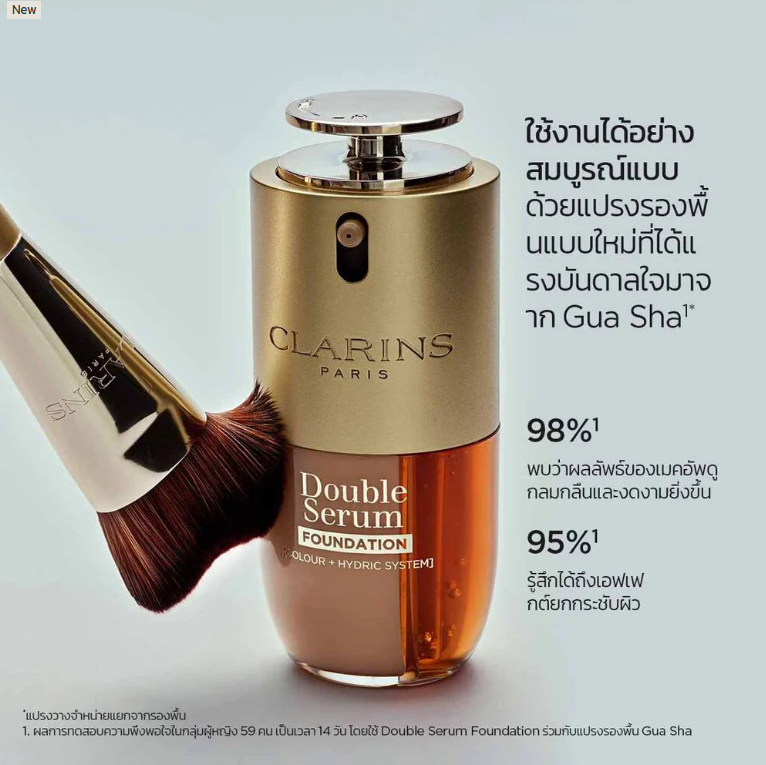 CLARINS Double Serum Foundation รองพื้นเซรั่มไฮบริดรุ่นใหม่ ที่หลอมรวมคุณสมบัติของเมคอัพและสกินแคร์ไว้ในหนึ่งเดียว เพื่อมอบระดับใหม่แห่งความกระจ่างใสดูอ่อนเยาว์