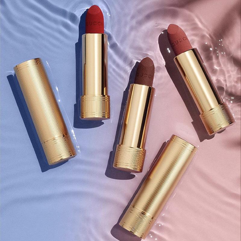 Gucci Rouge a Levres Mat Lip Colour 3.5g #217 Valeria Rose ลิปสติกเนื้อแมทมอบสีปากที่สดใสและอิ่มเอิบพร้อมสัมผัสนุ่มดุจกำมะหยี่