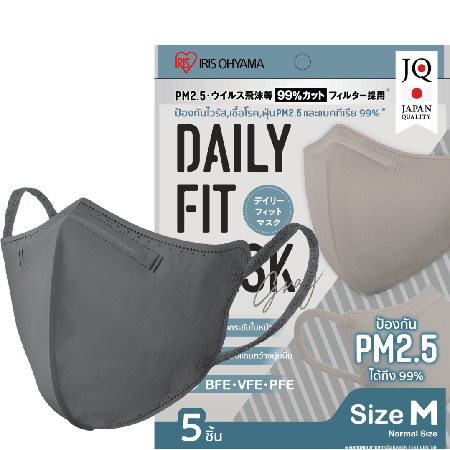 IRIS OHYAMA Face Mask Dairy Fit GREY (Size M) 5 Pcs/Pack