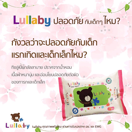 ผ้าเปียก Lullabyมีส่วนผสม น้ำแร่เซลทิคจากฝรั่งเศส ช่วยลดการระคายเคืองอ่อนโยน ใช้ได้ตั้งแต่แรกเกิดและทุกเพศทุกวัย