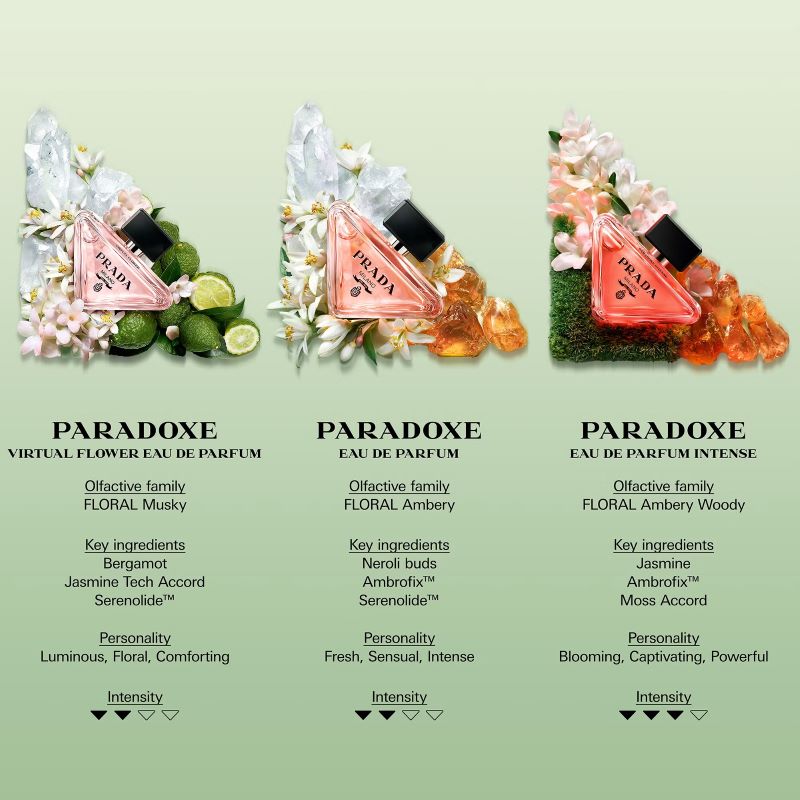 น้ำหอม PRADA Paradoxe Virtual Flower เป็นน้ำหอมที่ให้กลิ่นหอมฟลอรัลและมัสก์ ซึ่งได้กลิ่นมะลิที่โปร่งสบายและสว่างไสว กลิ่นที่เป็นเอกลักษณ์