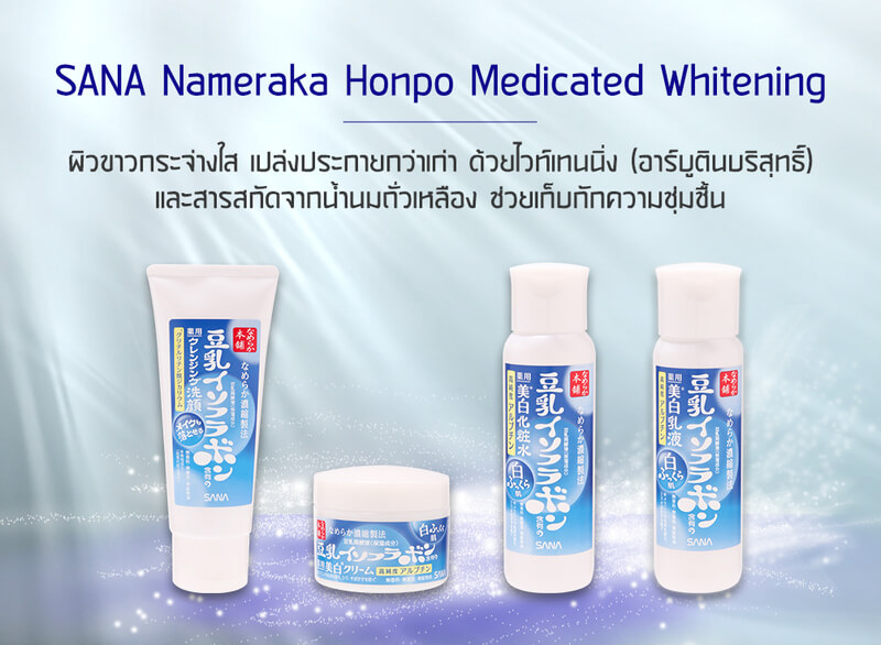 Isoflavone สารสกัดจากถั่วเหลืองเข้มข้น ที่มีคุณสมบัติดูแลผิวคล้ายฮอร์โมนนเอสโตรเจน ช่วยให้ผิวอิ่มน้ำ ตึงกระชับ ชุ่มชื่นเป็นพิเศษ นอกจากนั้นเขายังมีอาร์บูติน ไวท์เทนนิ่งจากธรรมชาติช่วยผลัดเซลล์ผิวเก่า และเปิดผิวใหม่ให้กระจ่างใสขึ้นอย่างโยน