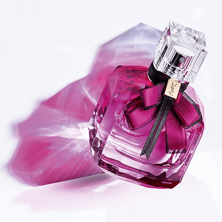 ตามด้วยกลิ่นพิมเสนใบ (patchouli) และแคชมีแรน (Cashmeran) กลิ่นหอมโปร่งบางทว่าอบอุ่นในแบบไม้หอมและกลิ่นไวท์มัสก์ (white musk) หอมแบบละมุนละไมราวกับหมู่เมฆต้องแสงตะวันในยามรุ่งสาง ชวนให้นึกถึงความเปล่งประกายสีชมพูดอกฟิวเซียของ MON PARIS EAU DE PARFUM INTENSE…