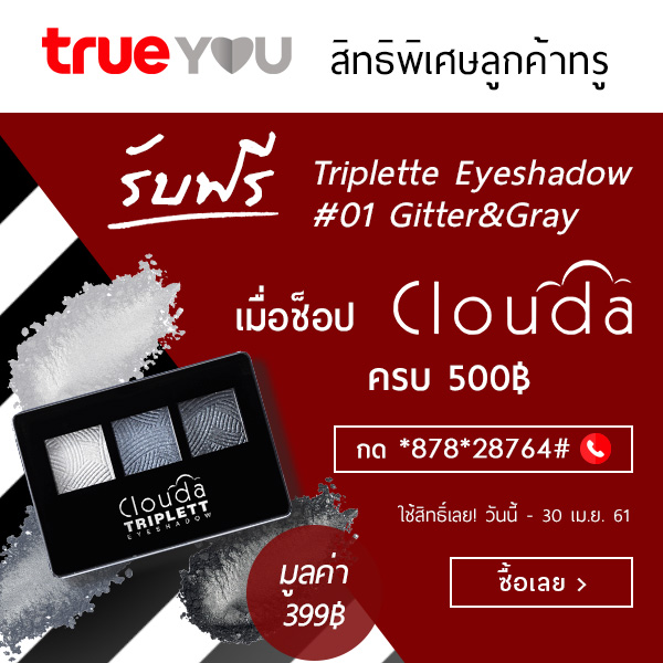 ลูกค้าทรู ฟรี Eyeshadow Triplette/ EP01 - GLITTER & GREY (มูลค่า 399 บาท) เมื่อช้อป Clouda ครบ 500 บาท