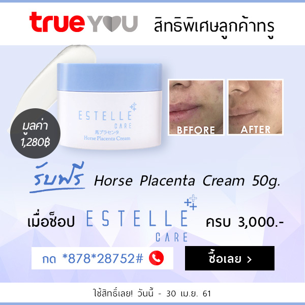 ลูกค้าทรู ฟรี Estelle Care Horse Placenta Cream มูลค่า 1,280.- เมื่อซื้อ Estelle Care ครบ 3000.-