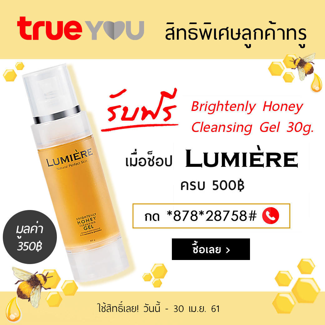 ลูกค้าทรู ฟรี Brightenly Honey Cleansing Gel (มูลค่า 350.-) เมื่อซื้อ Lumiere ครบ 500.-