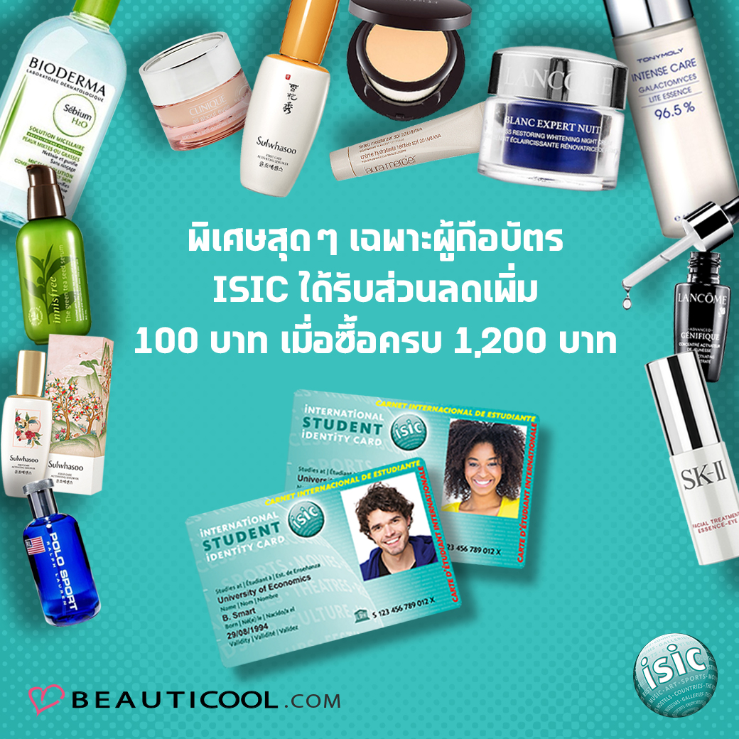 รายละเอียดโค้ดและเงื่อนไขโปรโมชั่นของผู้ถือบัตร Isic ไปที่ http://isic.co.th/discounts/beauticool/